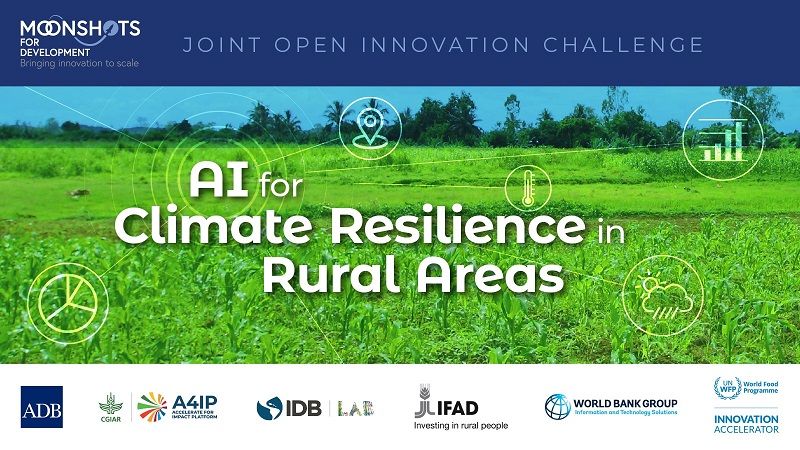 Another remarkable endeavor is the "AI for Climate Resilience in Rural Areas" Innovation Challenge, a Moonshots for Development initiative powered by IFAD, CGIAR Accelerate for Impact Platform, Asian Development Bank (ADB), IDB Lab, World Food Programme Innovation Accelerator, and World Bank Technology & Innovation Lab. This challenge recognizes the critical role AI can play in addressing climate challenges faced by vulnerable communities in Asia, Africa, Latin America, the Caribbean, and beyond.