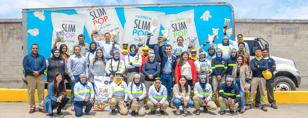 In 2016, according to the National Health and Nutrition Survey (ENSANUT), obesity rates in Mexico were alarming. 33.2% of school-aged children (5-11 years old) were obese, followed by 36.3% of teenagers (12–19 years old), and a concerning 72% of adults with obesity issues. Slim Pop emerged as a response to this reality, becoming the first brand of ready-to-eat popcorn popped with hot air in the Mexican market.